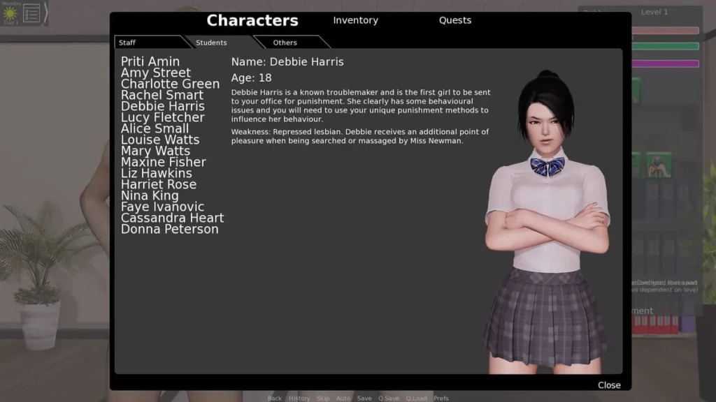 Your three main stats are your lifeblood. Discipline (Fear) is your immediate authority—use it to make students comply on the spot. Submission is long-term control; it’s how you make them want to obey. Popularity keeps the peace and opens certain dialogue options. My initial failure was prioritizing Popularity alone. Balance is key. A terrified school is unstable, but a loved one is unruly.