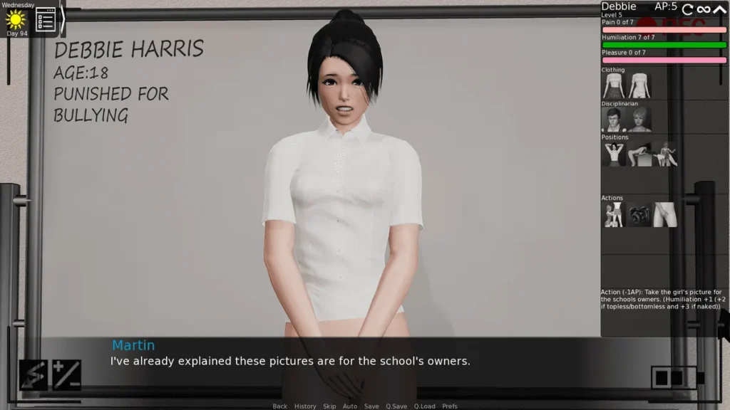 This quest is your practical exam. Miss Potts will resist at first, but persist. Each stage of her training—from removing her jacket to more intimate acts—rewards Influence. This is not optional. Think of it as investing in your infrastructure. The Influence you earn here will fund your ability to pass the very rules that allow you to punish students more effectively. It’s the engine of your early game progress.